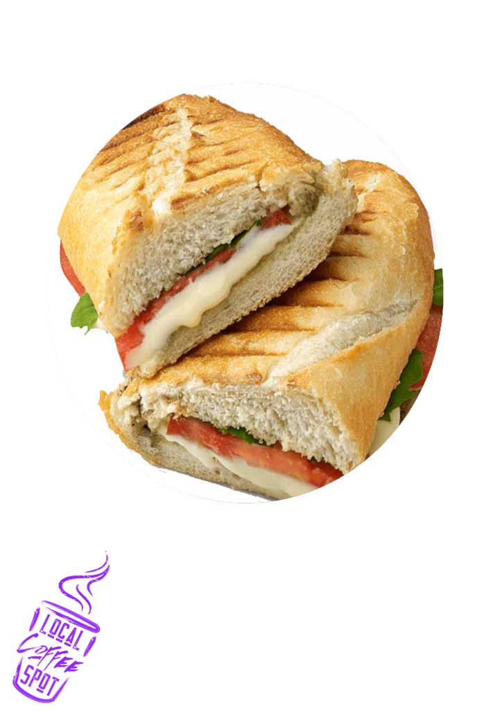 Local Coffee Spot (Central) is proud to offer this specialty Panini -Grilled Cheese style. Carefully placed cheese pressed between two slices of heavenly toasted Italian bread. Kick back, relax and set you mind at cheese.