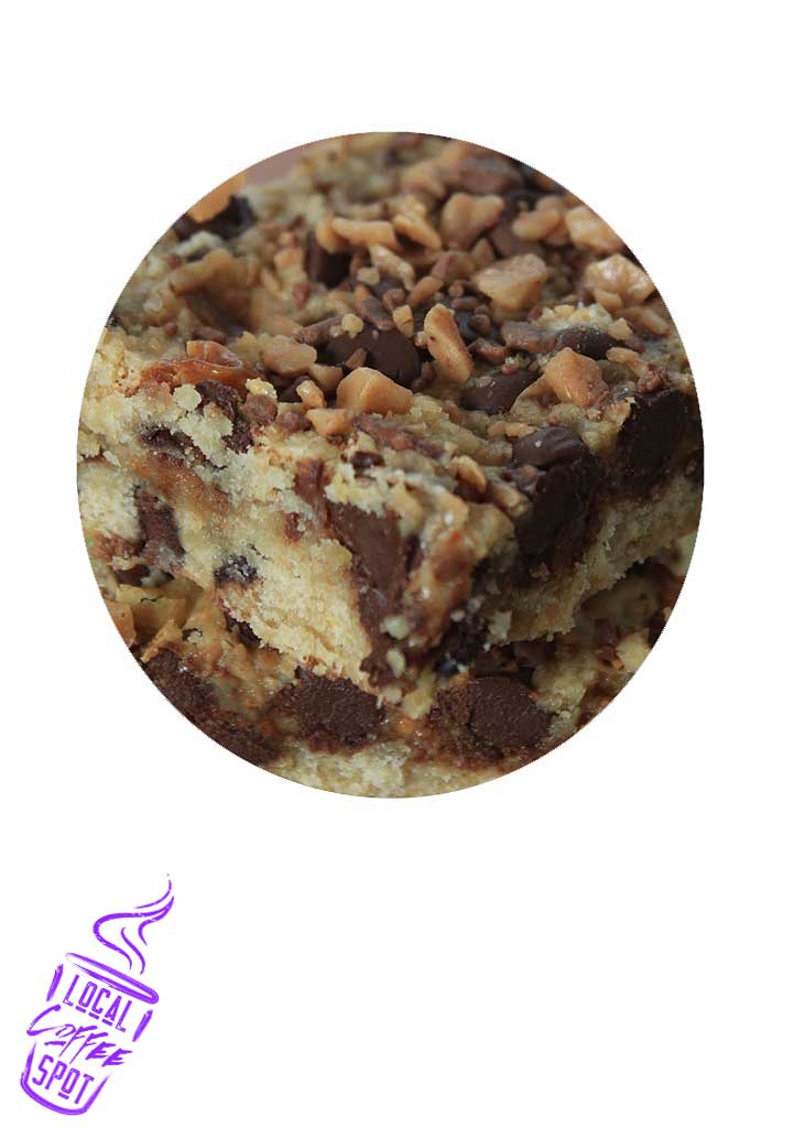Local Coffee Spot (Central) offers wonderfully rich Ugly Bars worthy of indulgence. These Toffee Bars are a delicious combination of cookie bar and toffee candy. Buttery shortbread, gooey toffee filling, melted chocolate, and toffee bits.