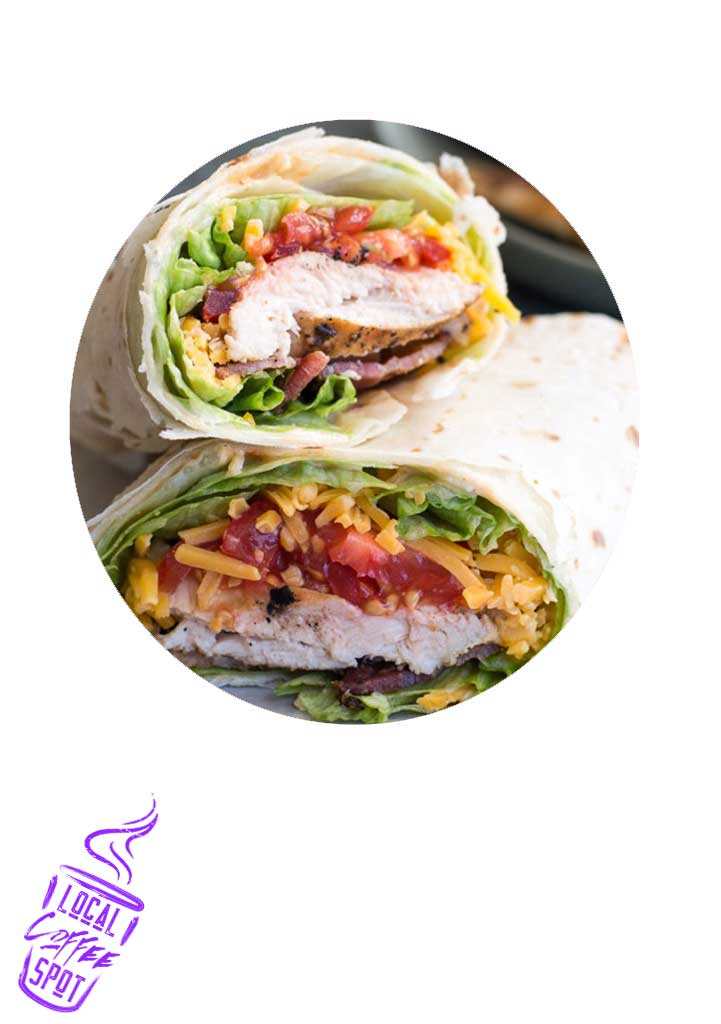 Local Coffee Spot (South Lake Union) is proud to offer our Chicken Bacon Ranch Wrap. Part salad, part wrap, and completely delicious! This toasted handheld, soft tortilla wrap is filled full of flavor with roast deli-style chicken, bacon, lettuce and diced tomatoes! Wrap your mind around that!